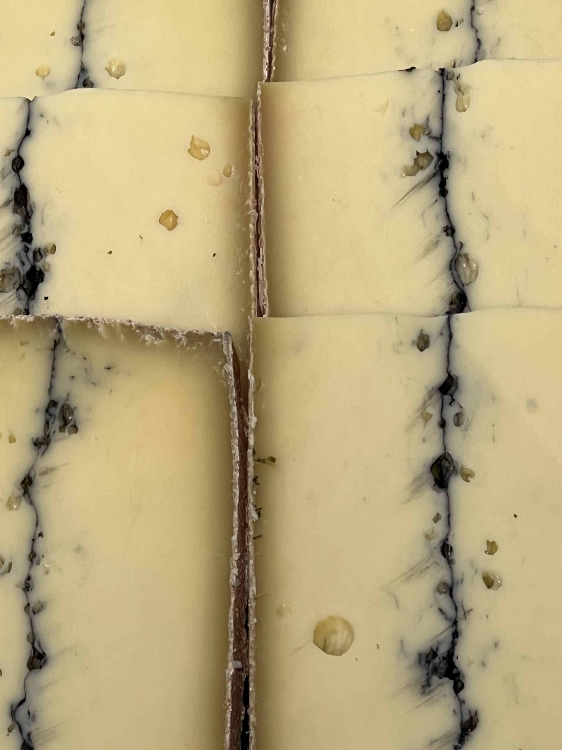 Une plaque comestible de caséine, protéines du lait, de couleur jaune assure l’identification du fromage. Elle est apposée, lors de la fabrication, sur le talon de chaque fromage !